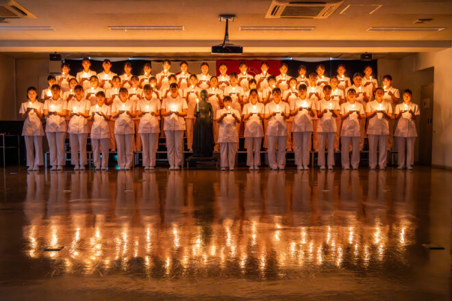 47期生が宣誓式を行いました 2025.10.01 行事 47期生(2年生)が臨床実習に出る前の宣誓式を行いました🕯✨ 宣誓式では医療従事者としての誓いを立てます。 明日からの臨床実習は歯科衛生士になるための大きな一歩です🔥 約1年間頑張りましょうね。